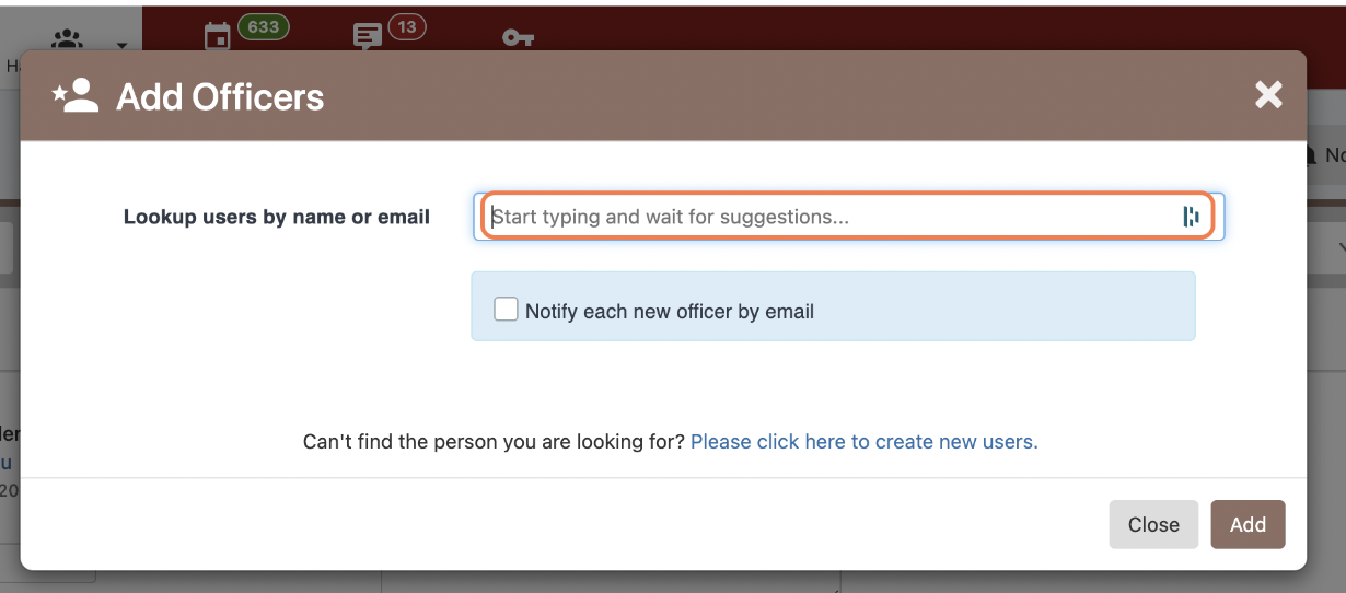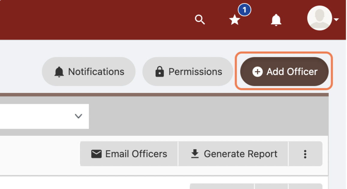 STEP 4: Select ‘Add Officer’ in the top right corner and enter the student's name or Stanford email.