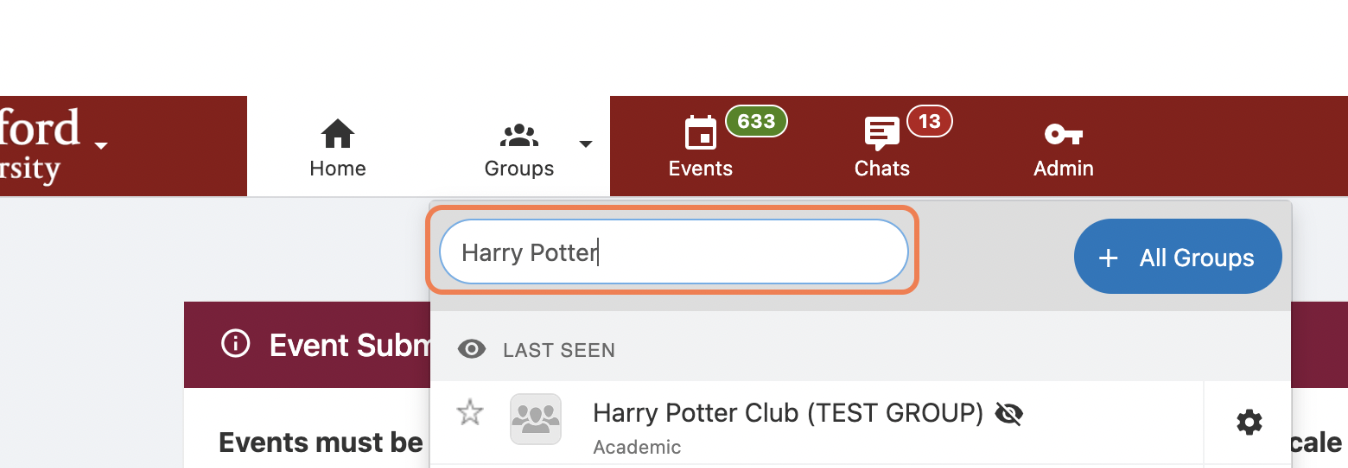 STEP 2: Search for the group for which you are an officer by clicking ‘Groups’ and selecting the group.