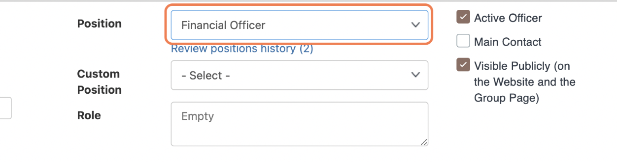 STEP 4: MOST IMPORTANT! Assign one of the three positions (President, VP, or FO). Anything else or custom positions will not get access to GrantEd. Also, make sure the ‘Active Officer’ is checked.