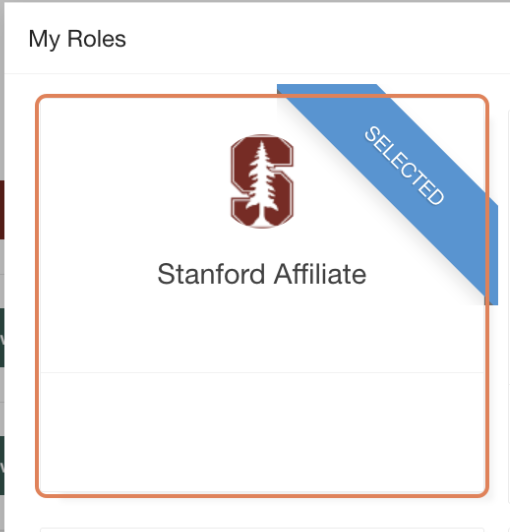 Select the Stanford Affiliate role when the My Roles pop-up window appears.