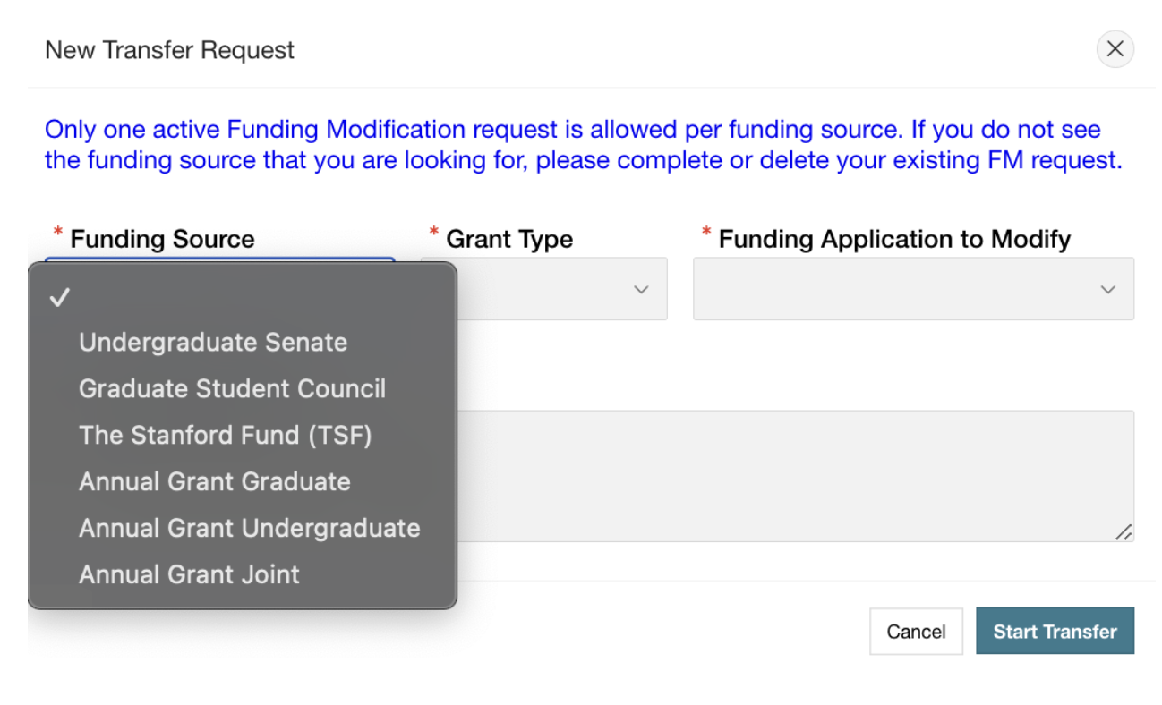 STEP 3: Click on "New Funding Modification" to start your request.